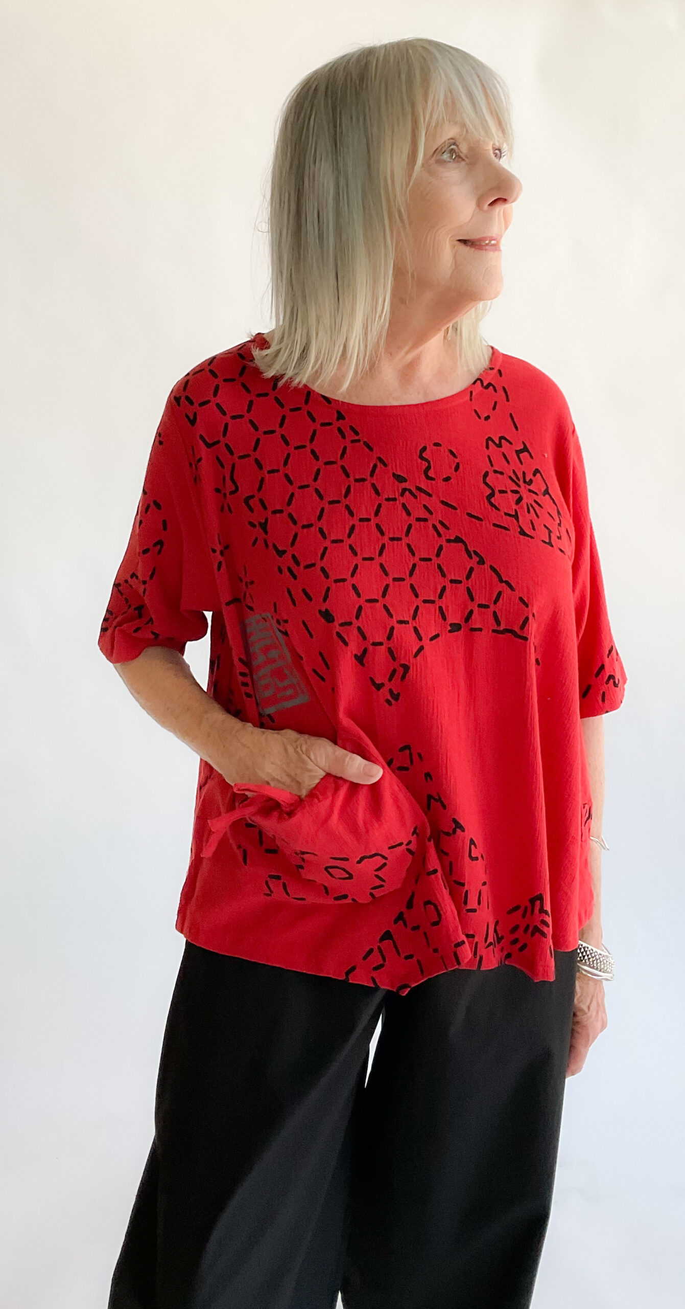 Top by Yasuko.100% Cotton. Machine wash cold, line dry in shade.